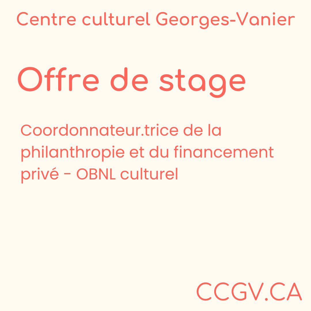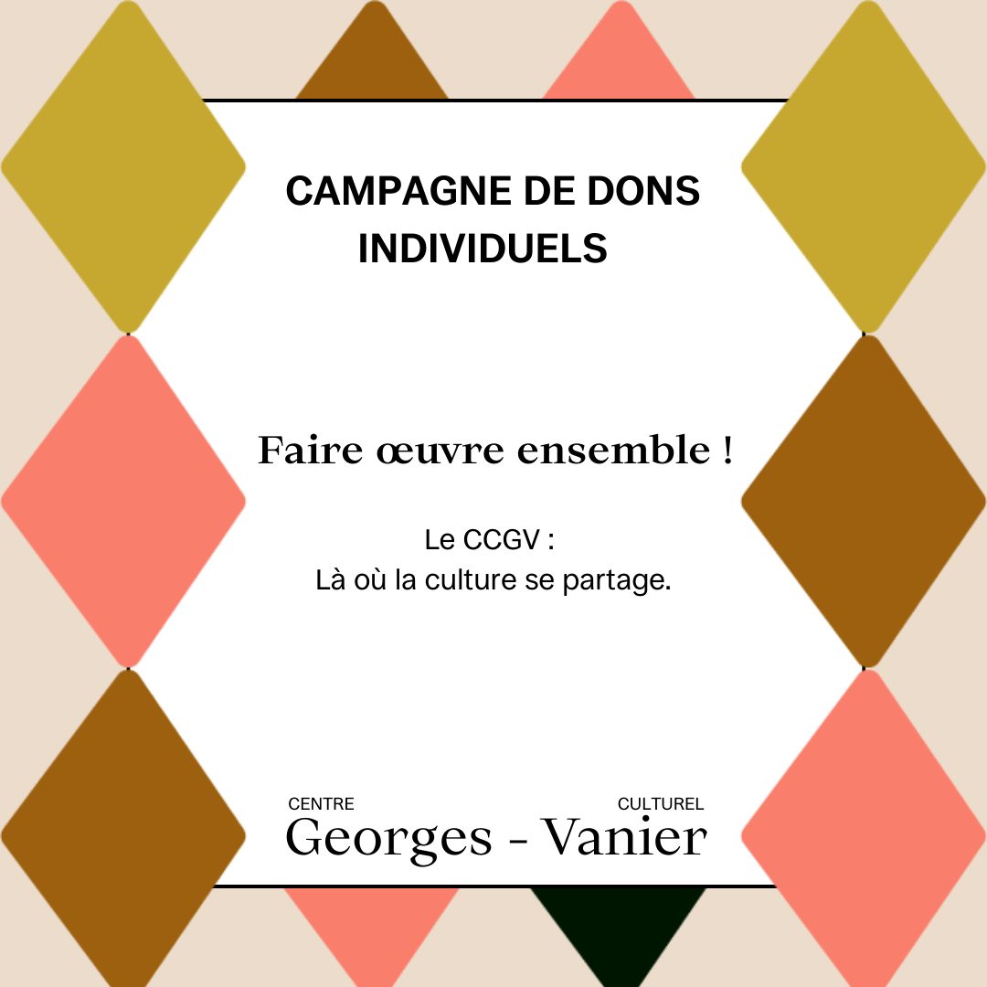 Le Centre culturel Georges-Vanier est un organisme à but non lucratif dédié à promouvoir les pratiques artistiques et culturelles et les rendre accessibles à tous.tes.