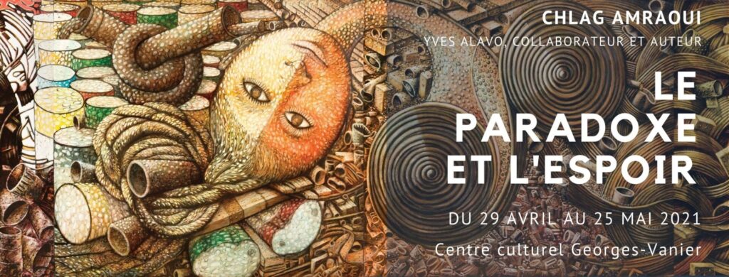 Le Centre culturel Georges-Vanier (CCGV) présente du 29 avril au 25 mai 2021 l’exposition solo intitulée Le paradoxe et l’espoir de l’artiste Chlag Amraoui (Hassane Amraoui) avec la collaboration avec l’auteur, compositeur et poète, Yves Alavo.