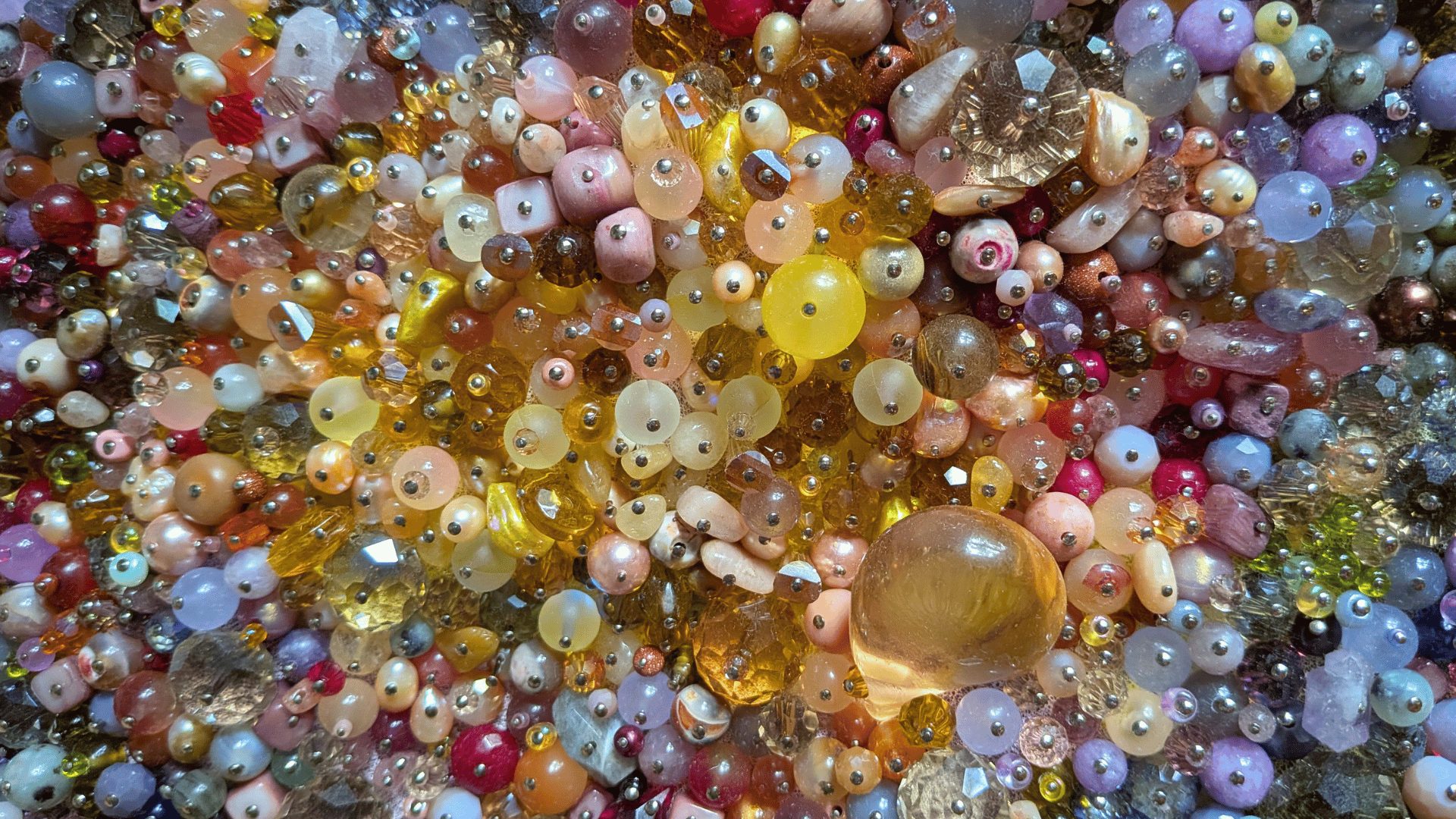 Cumuler les guérisons expose des ecchymoses. Des structures murales de tailles variées sur lesquelles sont épinglées des milliers de perles colorées. Les nuances font écho à nos petits bobos. L’ensemble est d’autant plus vivant qu’il recèle aussi des pièces charnelles et des tissus intimes.