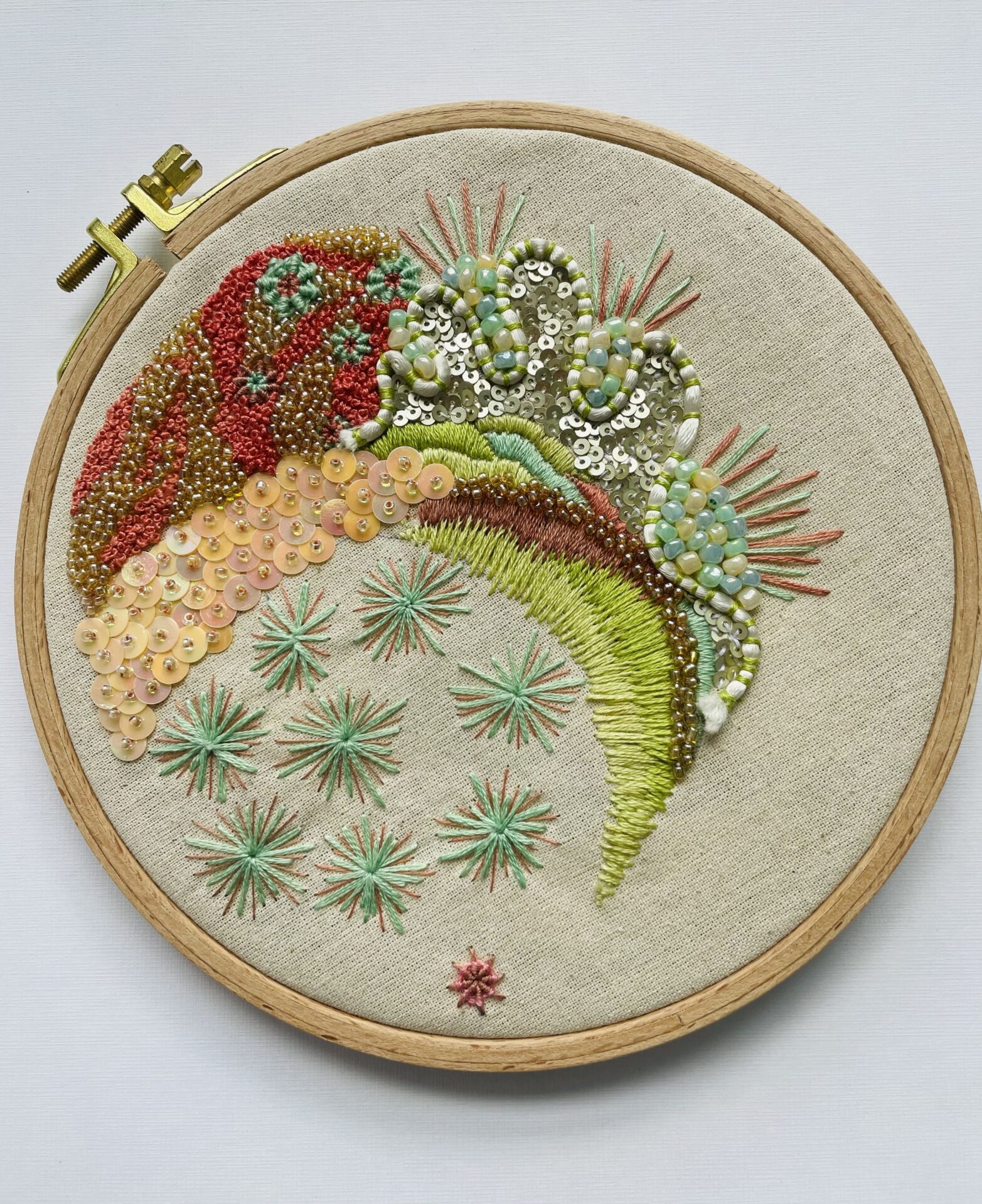 Cette série de cours, idéal pour les débutants et les niveaux intermédiaires, vous enseigne les bases essentielles de la broderie et du perlage. Vous apprenez des techniques de broderie et de perlage pour créer une composition abstraite en utilisant des fils de coton, des perles et des paillettes, selon un dessin modèle sur un tissu de coton. Explorez les points de contour, de remplissage, à plat et en relief pour donner vie à votre création. Découvrez le processus créatif pour sélectionner une palette de couleurs et créer des textures à l’aide d’une variété de points.