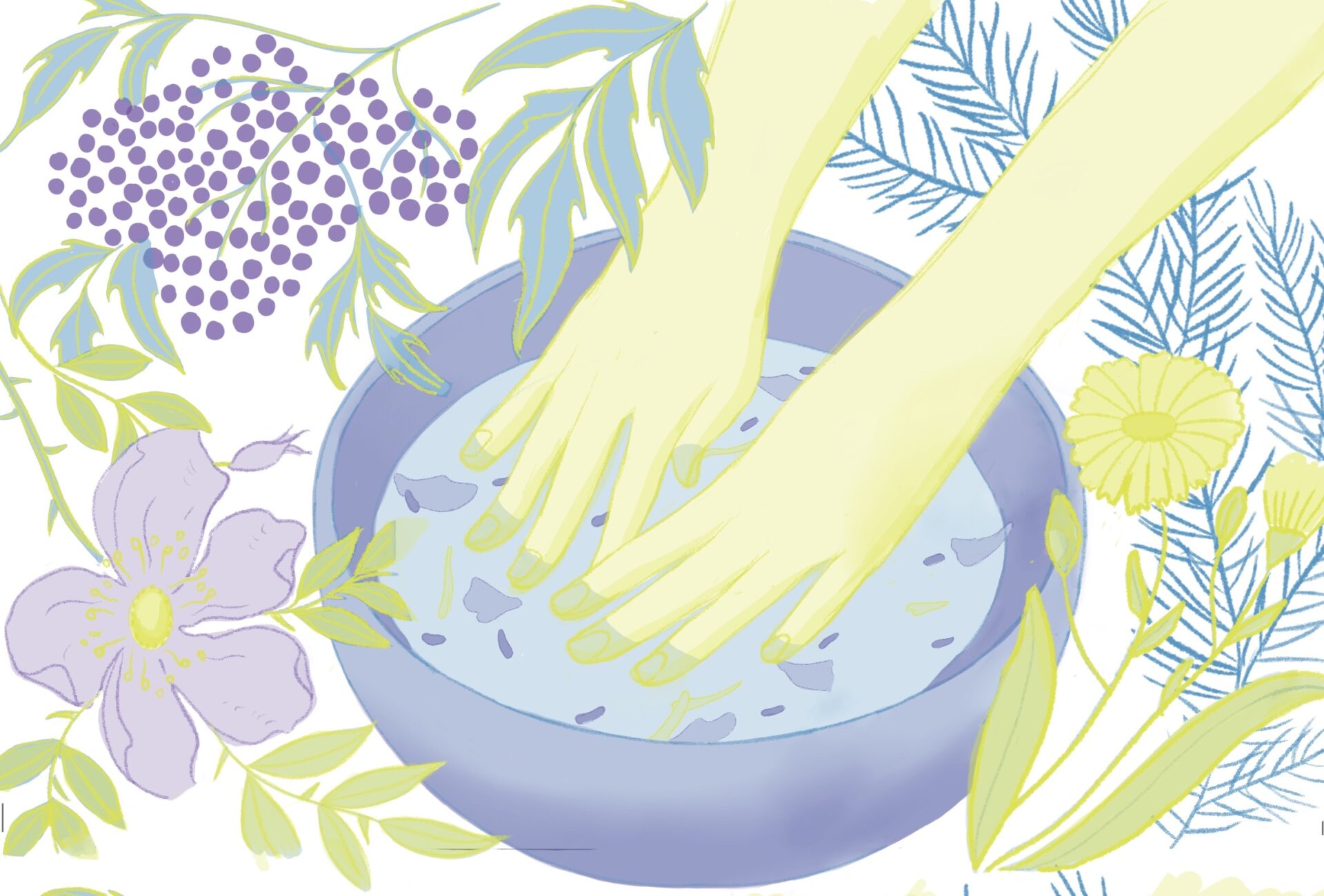 Après avoir vécu l’expérience de l’exposition, les participant·e·s seront invité·e·s à composer leur propre bain de mains. À partir d’eau chaude et de matériaux naturels présents dans l’espace (pétales de rose, écorces d’orange, lavande…) chacun·e créera un mélange apaisant dans lequel plonger ses mains. L’atelier sera guidé par Salima Punjani